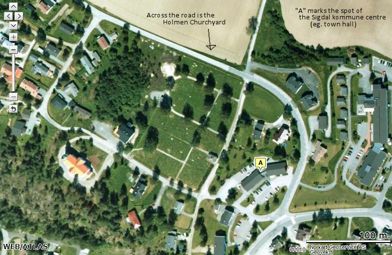 The image below is adapted from www.1881.no. It shows the Holmen church graveyard. The current Holmen Church is the larger building with the orange roof in the bottom left hand corner.